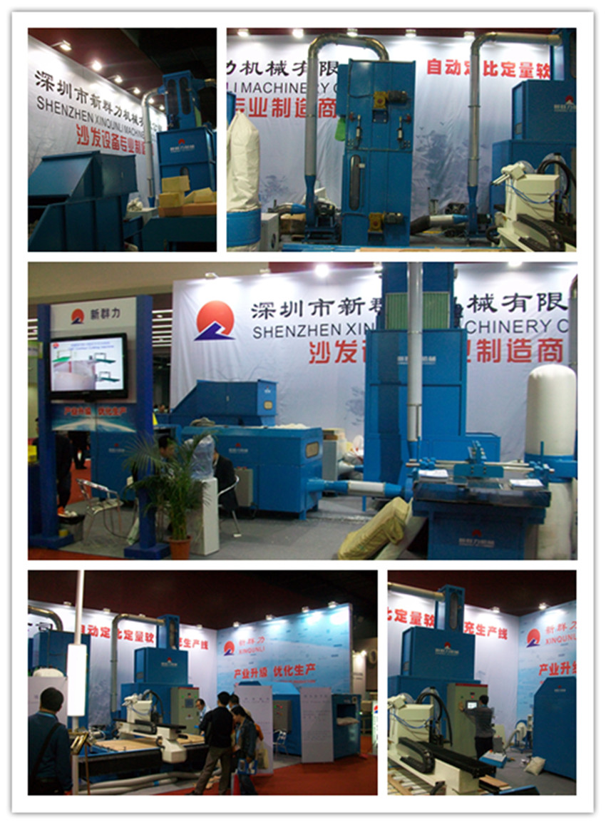 在展(zhǎn)會中,我司(sī)展出了最(zui)新推出的(de)裁闆機、全(quan)自動大批(pi)量枕頭(抱(bào)枕)生産線(xian)、重新改良(liáng)的ESF001D坐墊填(tian)充機以及(ji)ESF007-3帶有三把(bǎ)刀的海綿(mian)切粒機。吸(xī)引了來至(zhi)國内外衆(zhōng)多客戶前(qian)來參觀。